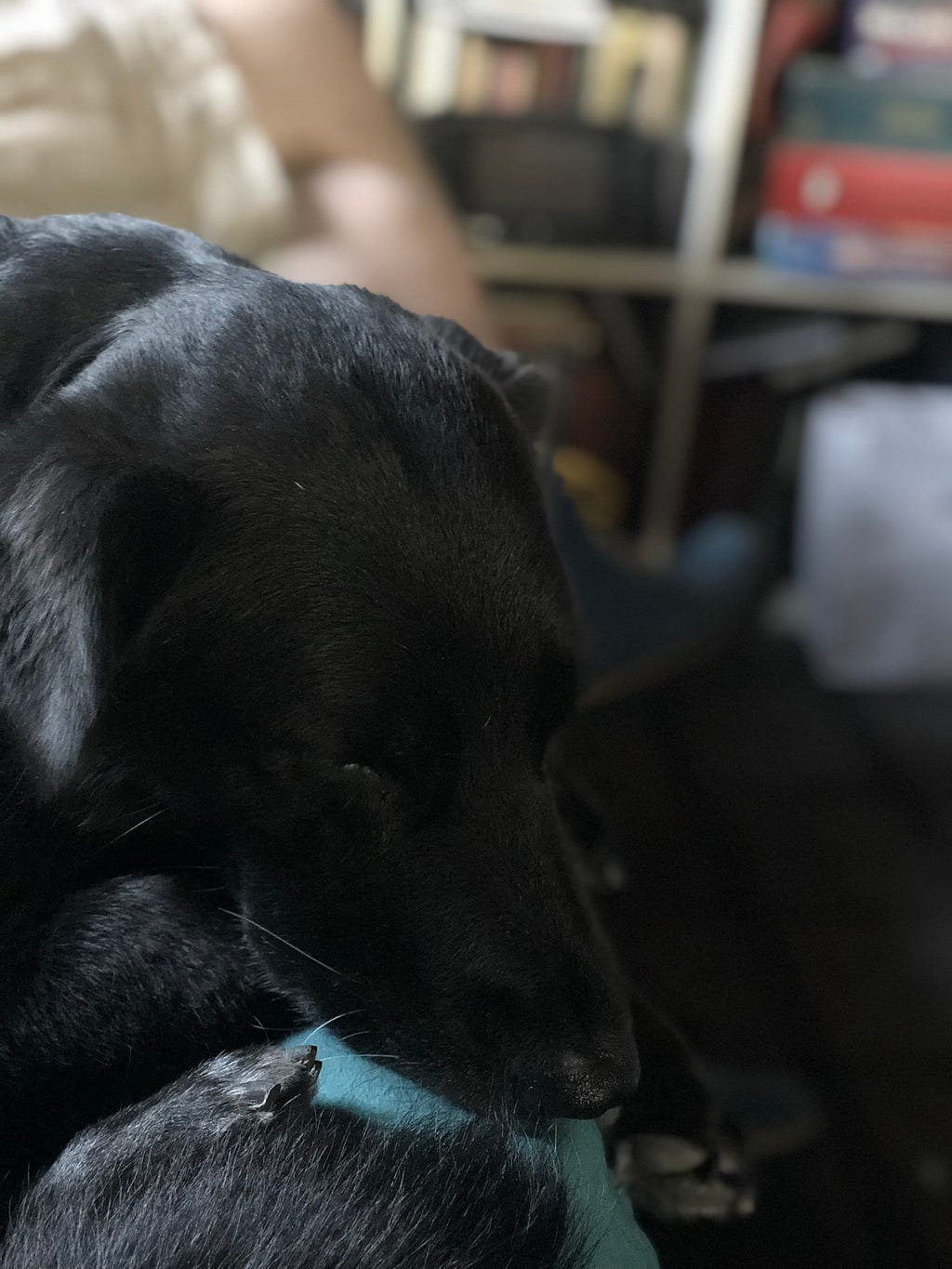 What an adventure she took us on! She got her period, despite supposedly having been fixed. [Site note: a menstrual pad in some little boy’s Y-fronts turned backwards so the tail comes out the “Y” is much more comfortable for a dog than the diapers you can buy. Thanks, internet!] She put the greyhound in the hospital three times, but the first time was during this hormonal phase. The other two times, she also bit mom, who was trying to break things up. The greyhound was shocked every time: she’d never really learned how to “dog”, poor thing… She never hated Helen, tho. Helen could be set off by anything: from a delivery person, to a leaf in the yard, to a guest on the sofa who she’d walked away from only 5 seconds earlier… Still, she was not — you have to believe me — a dangerous dog. She was anxious and scared. She didn’t trust anyone easily, but she also didn’t want to be alone. Much like the other member of the household with these symptoms, she got a shrink, and some meds, and was made to know she was safe and loved.